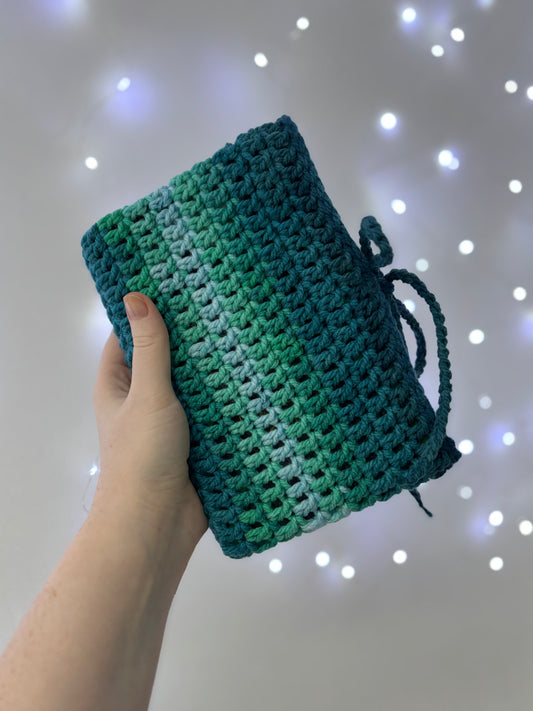 Ombre Blue / Green Crochet Book Sleeve / Book Cover